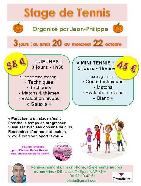 Stages de la Toussaint avec Jean-Philippe (Mini-Tennis, Jeunes et Adultes)